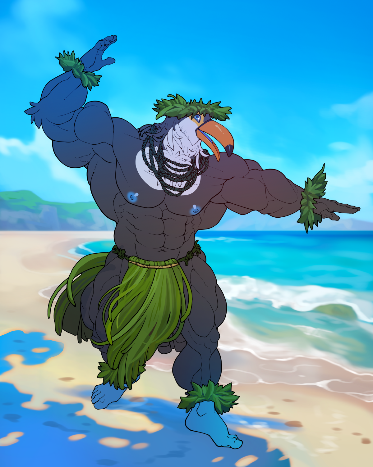Anatomy-focused character illustration. Flat color through fully rendered. Any species, any complexity.