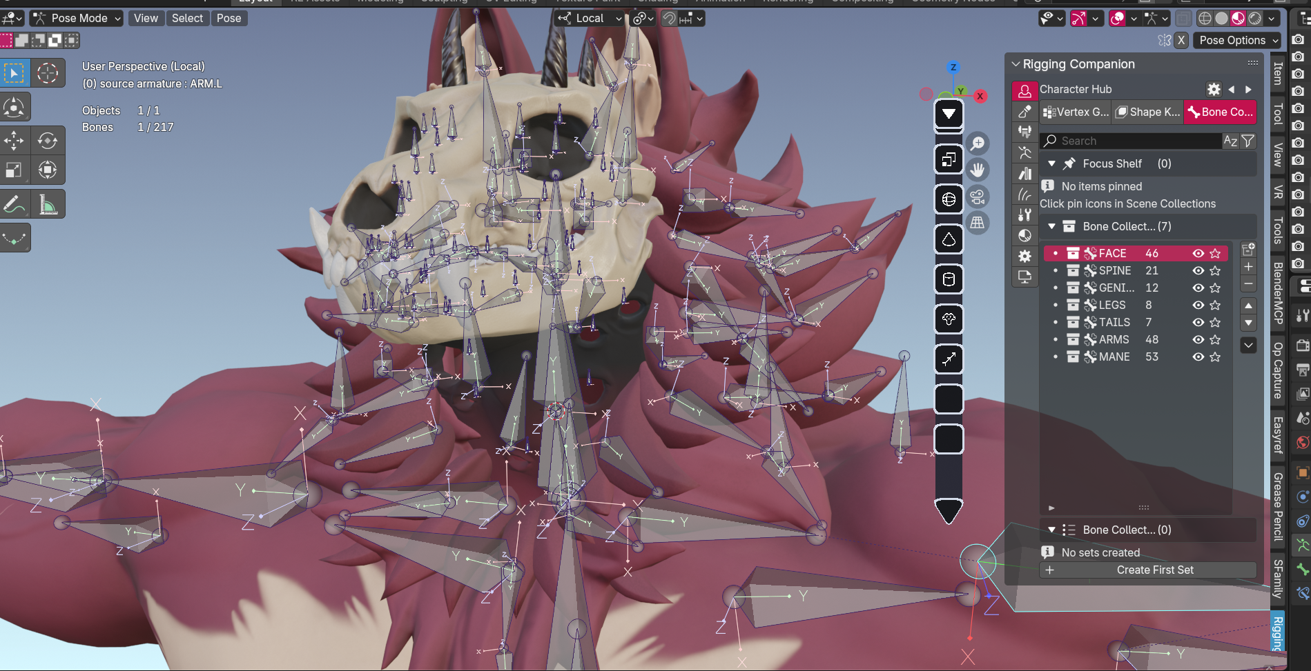 For animation commissions, I create a full control rig on top of the deformation bones. This includes IK/FK switches, facial controls, muscle flexing systems, and anything else you need to animate your character efficiently.