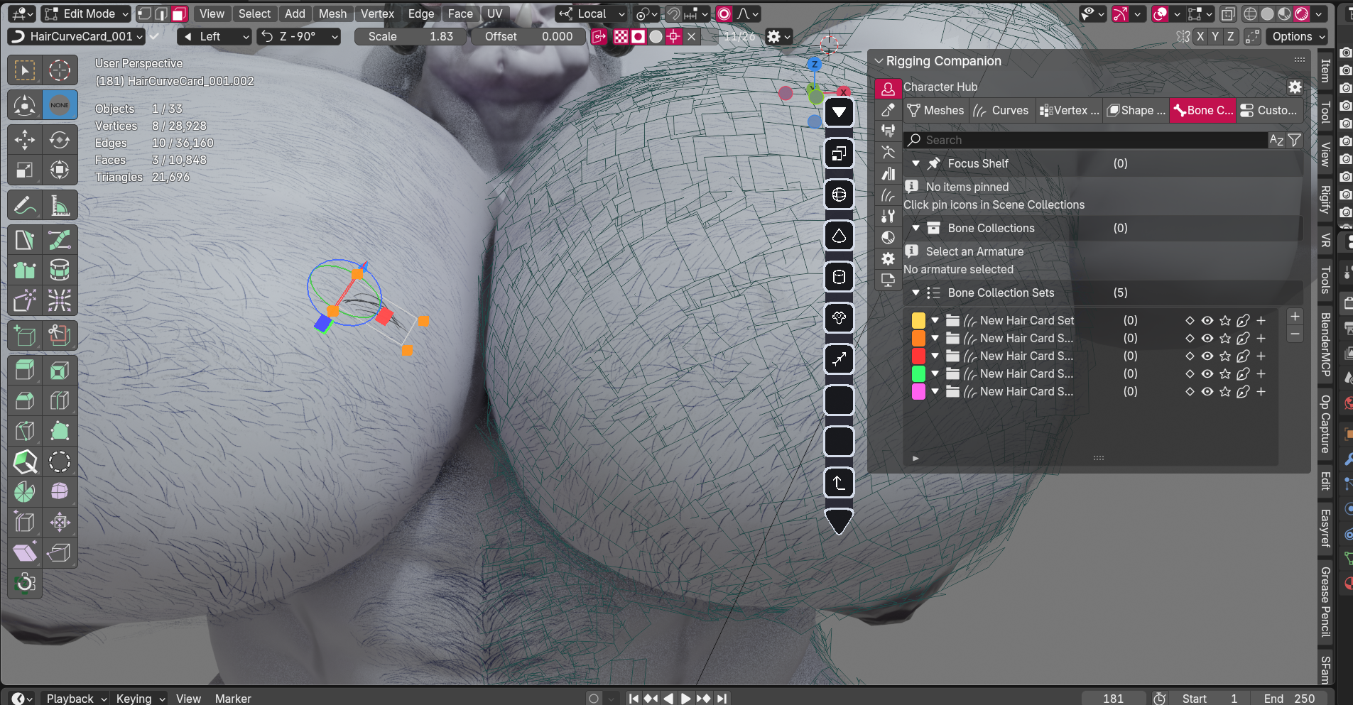 For characters that need actual hair or fur (not just textures), I create particle systems, hair cards, or groomed strands. This could be head hair, body hair, fur, feathers, or other strand-based elements.