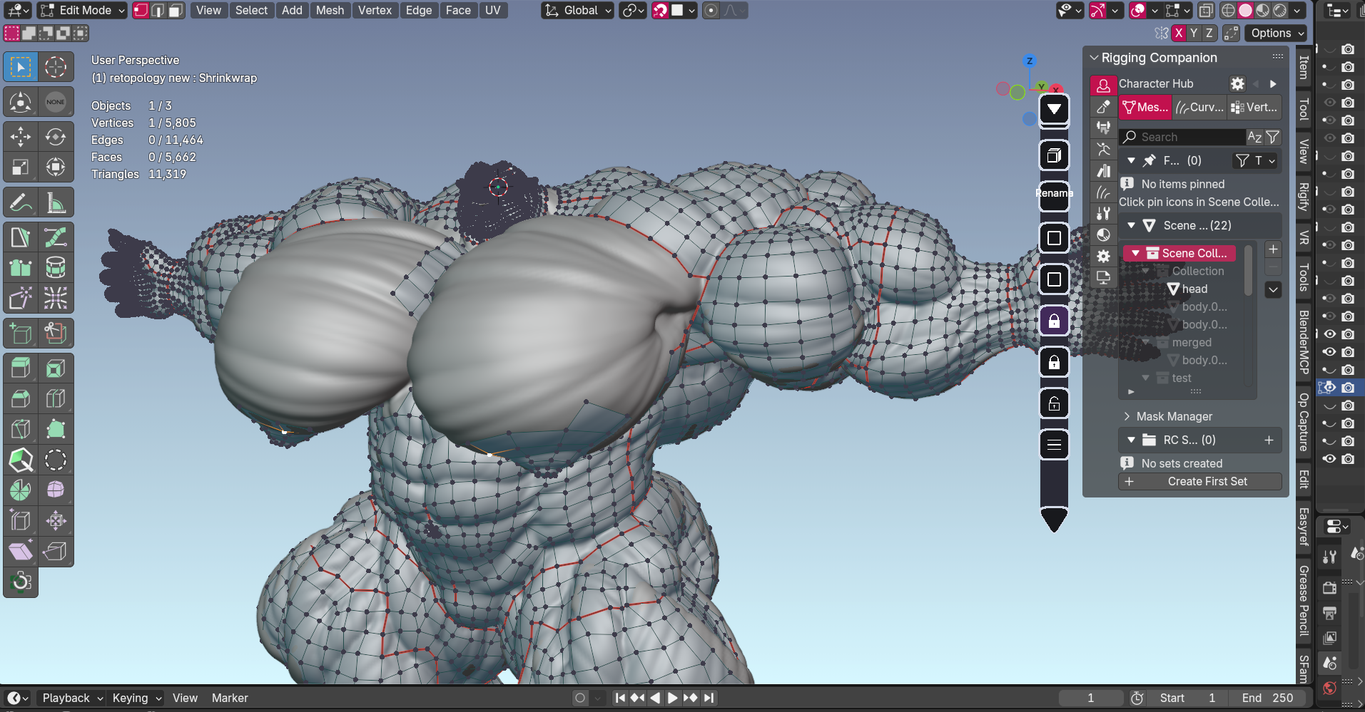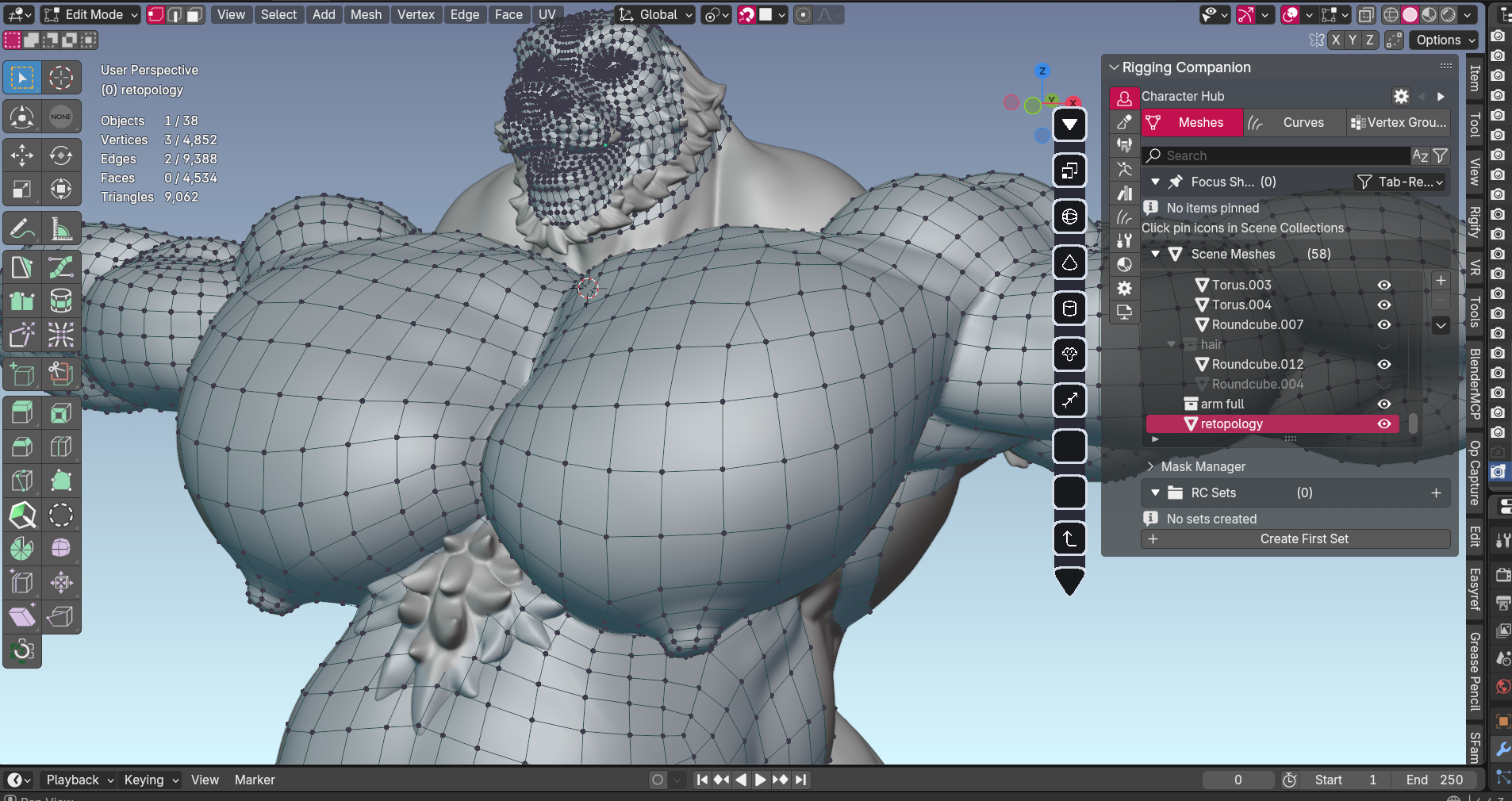 Proper topology is what separates characters that move naturally from ones that look broken when posed. This step ensures shoulders don't collapse, elbows bend smoothly, and muscles flex correctly.