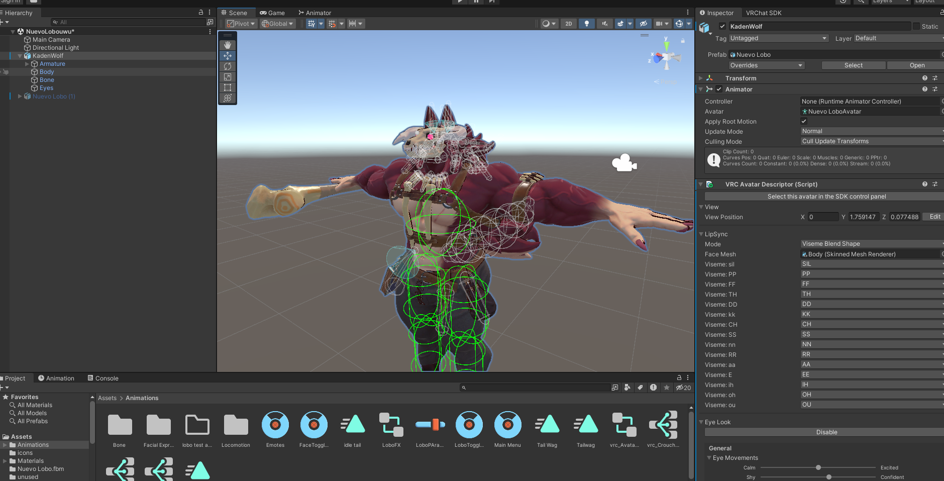 I import your character into Unity and set up everything needed for VRChat. This includes avatar descriptor setup, animation controllers, expression menus, physics, shaders, and optimization.
